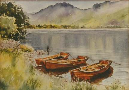 The painter saw these boats on an autumn visit to the Lake District