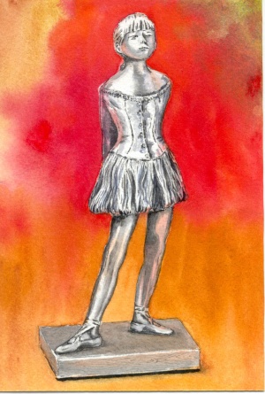 A painting of the little dancer statue by Degas